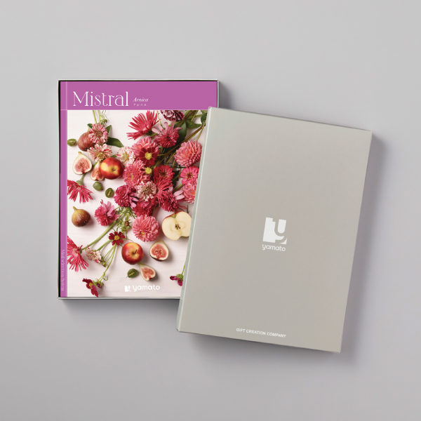 コース名の花をモチーフにした、美しい表紙が特徴のカタログギフト「ミストラル」。毎日使える雑貨から、ちょっと贅沢なグルメまで、「ほんものを贈ろう」をテーマに、国内外で愛されるブランドの品々を集めた総合カタログギフトです。華やかな見た目は、引き出物や結婚祝いなどのブライダルシーンやそのお返しギフトにも活躍します。女性に贈るのにおすすめのカタログギフトです。