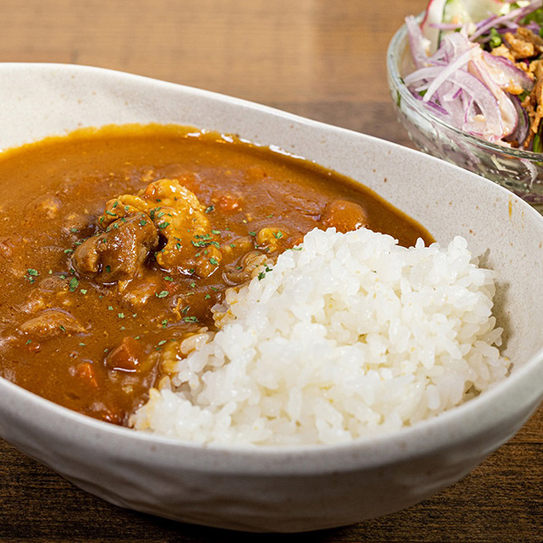 店主のカレー好きが高じて商品化!焼豚を製造する時にできる国産豚肉の切れ端をふんだんに使用しました。ゴロゴロした肉がとろける食感が最大の特徴です。豚肉の旨みが大量に詰まった焼豚屋のカレーをご堪能下さい。