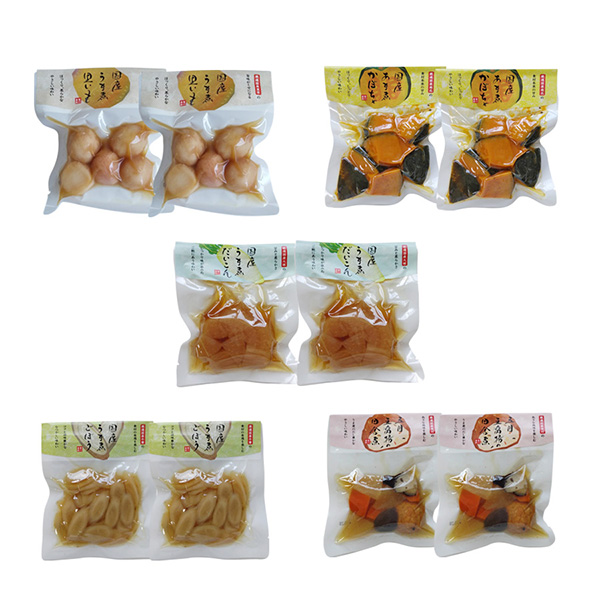 国産うま煮食べきりサイズ5種 各2袋入|化学調味料不使用のたれで炊き上げた根菜類の煮物セット。独自の真空調理製法により具材本来の味が際立っています。