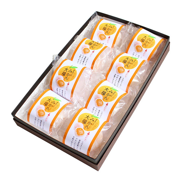 国産みかんを1個まるごと、ふわふわなお餅に包み込みました。上質なみかんをまるごとお楽しみいただける一品です。みかんをほんの少しの手亡豆の白餡で包みこみ酸味がまろやかに。お子様から通なお客様までお楽しみいただける商品となっております。