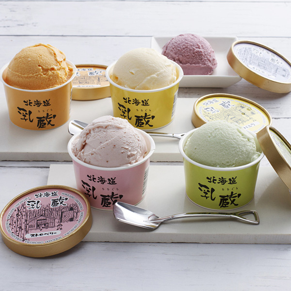 乳蔵 北海道アイスクリーム5個入|北海道牛乳を使用したアイスセット。人気のバニラに赤肉・青肉メロンやハスカップ、ストロベリーの4種のフルーツの味も楽しめます。