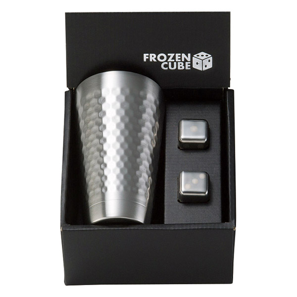FROZEN CUBE 二重タンブラー&キューブ2P|二重構造のステンレスタンブラーと、氷の代用品として使えるステンレス製キューブのセットです。ステンレスキューブは冷凍庫で冷やして使用することで、通常の氷のように溶けて飲み物が薄まることがありません。何度も繰り返しご使用ができるのも嬉しいポイントです。