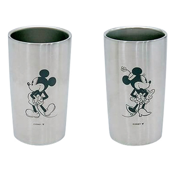 ディズニー WD ステンレス真空タンブラーセットS2(ミッキー&ミニー) 300ml|並べると向かい合うミッキーとミニーがそれぞれ描かれた、落ち着いた雰囲気のステンレスタンブラーセット。保温保冷効果の高い真空2重構造です。シンプルなデザインだから会社でも使いやすい便利なアイテム。